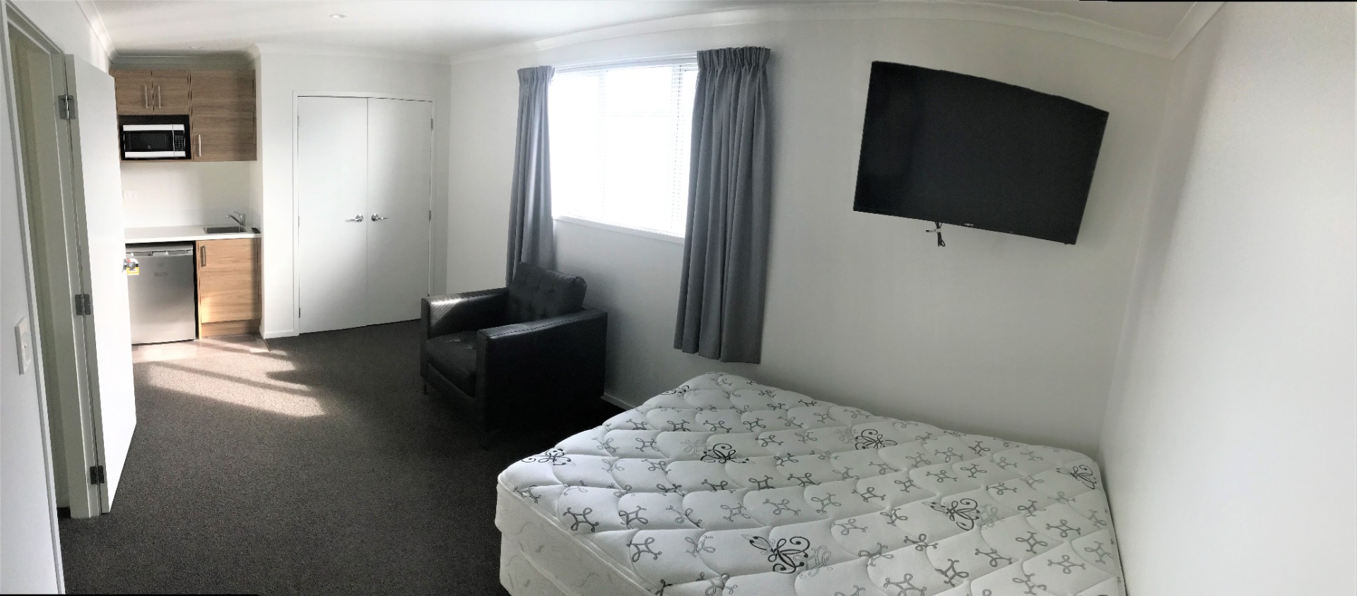 Individual Studios include : microwave, double mattress and base, bar sized fridge/freezer, sofa, wall fixed panel heaters and wall mounted TV.