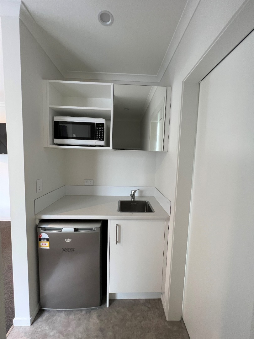 1 bedroom studio room with private bathroom & kitchenette. Shared communal kitchen/laundry.